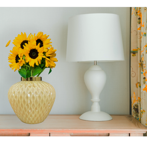 میز ناهارخوری یا کنسول: ترکیب این گلدان با گلهای سفید یا برگهای سبز، جلوهای طبیعی و لوکس ایجاد میکند.